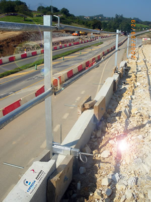 Sistema tradicional empotrado en losa de hormigón compuesto por guardacuerpo tubular y barandillas extensibles. Acabado galvanizados.