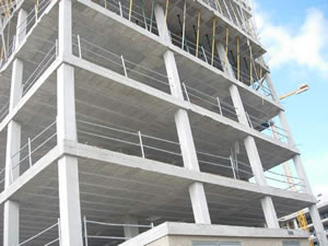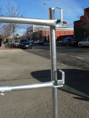 Sistema tradicional empotrado en losa de hormigón compuesto por guardacuerpo tubular y barandillas extensibles. Acabado galvanizados.